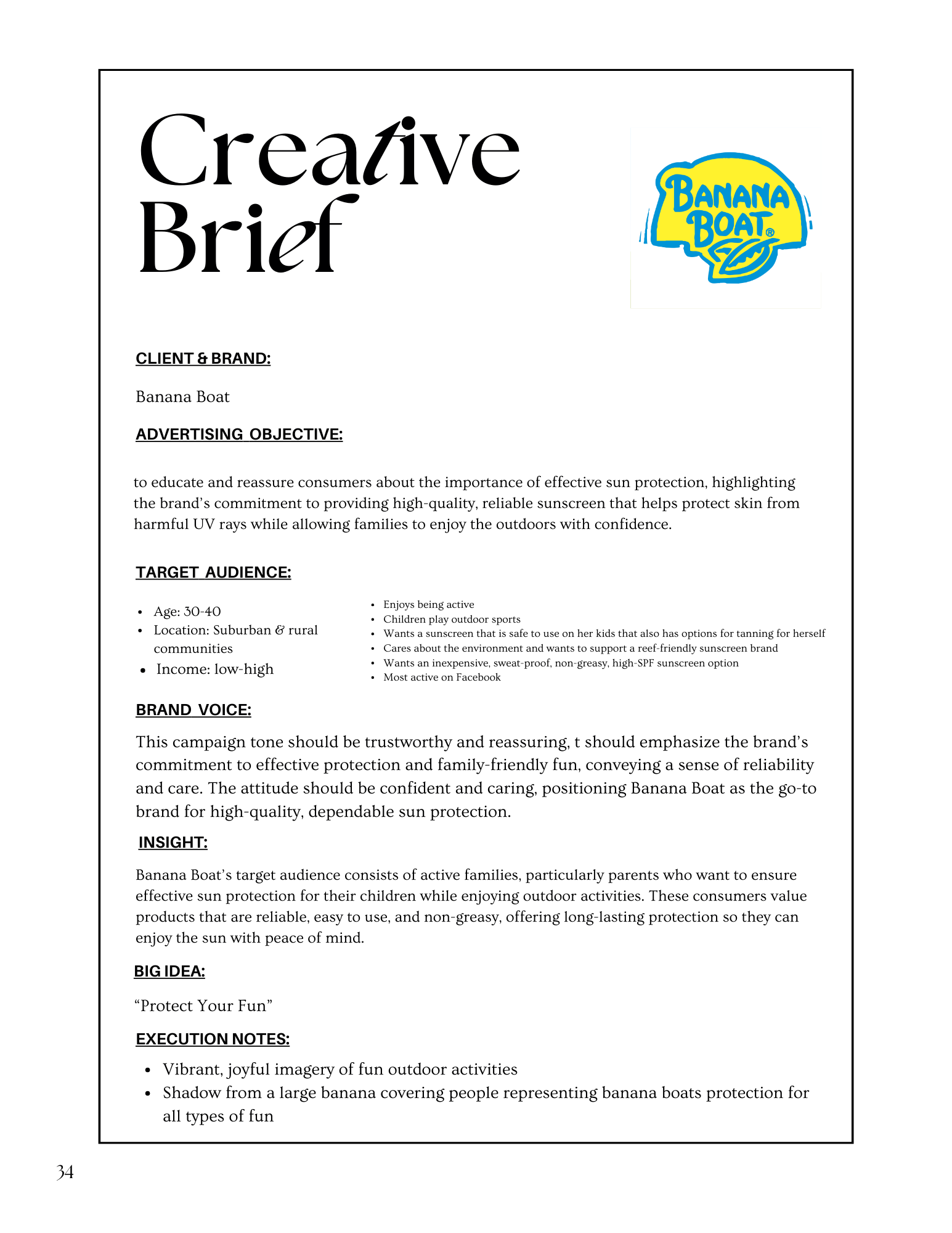 In my junior year at Suffolk University, I had the opportunity to partake in a semester-long course that would ultimately lead me to find my focus in Advertising. I was able to gain hands-on experience in the process of campaign creation. This is when I found my passion. I learned how to build campaigns that align with a brand’s values while effectively reaching and engaging the target audience. Through research, I crafted tailored strategies, designed visual assets, and wrote ad copy to enhance the campaign’s messaging. I then was able to present my campaign using my knowledge of producing creative briefs. This hands-on experience allowed me to refine my skills in creative strategy, brand communication, and professional presentation.